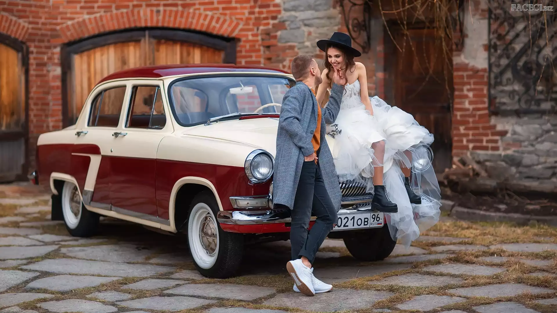 Kapelusz, Samochód, Mężczyzna, Kobieta, Zabytkowy, Adidasy, Sukiena, Biała, Płaszcz - faceci.biz
